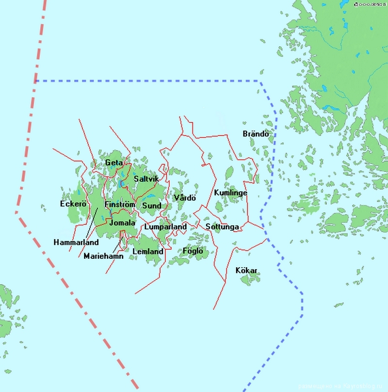 Аландские острова — это архипелаг протяженностью 130 км., чья площадь равна 1552 км. кв. Рассматривая Аландские острова на карте можно увидеть, что они состоят из 6757 островов, лишь 60 из которых обитаемы. Административным центром здесь считает единственный город Мариехамн, расположенный на самом большом острове под названием Аланд, площадью в 685 км. кв.