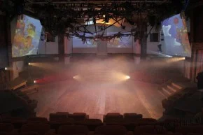 Несмотря на наличие общепринятых схем , некоторые современные театры созданы по-своему. Некоторые, напоминают античный театр, где сцена располагается в центре, а зрительные места вокруг неё. Такое устройство дает хорошую видимость и слышимость, объединяет сцену и зрительный зал, а также позволяет каждому зрителю чувствовать себя на равных с остальными. К античной схеме сегодня прибегают, в основном, экспериментальные труппы, для постановок которых не требуются масштабные декорации и многоярусные кулисы. Как правило, в таких постановках задействовано немного актеров и основной акцент делается на экспрессию актеров и смысловую нагрузку.