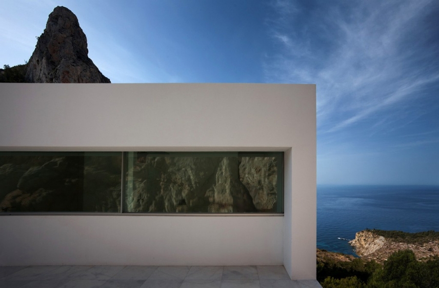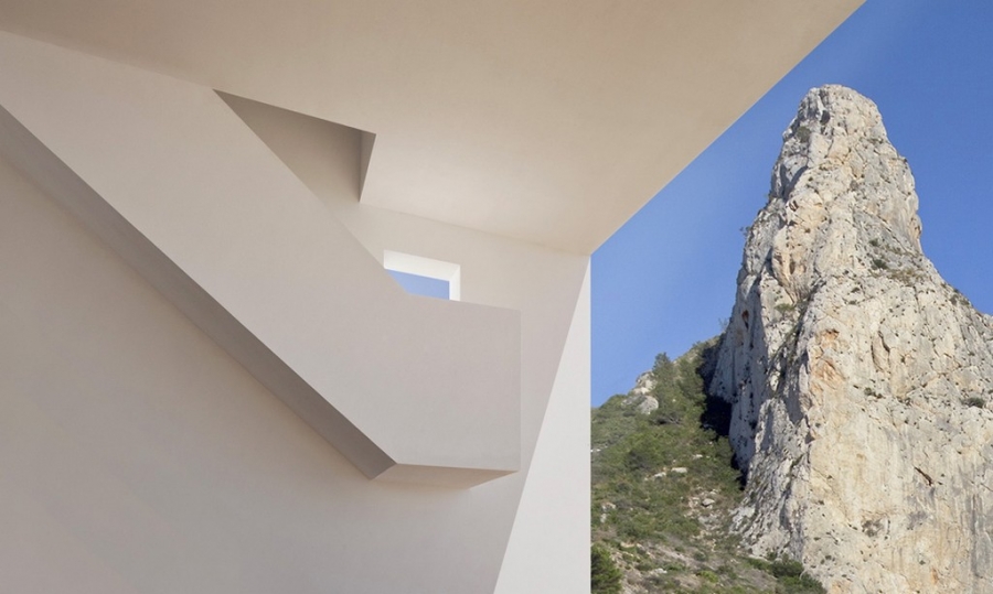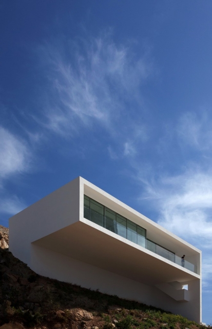 Белоснежная вилла в Испании спроектирована и построена специалистами компании Fran Silvestre Arquitectos.  Несмотря на внушительные размеры, эта вилла свисающая с края крутого утеса кажется воздушной и невесомой.