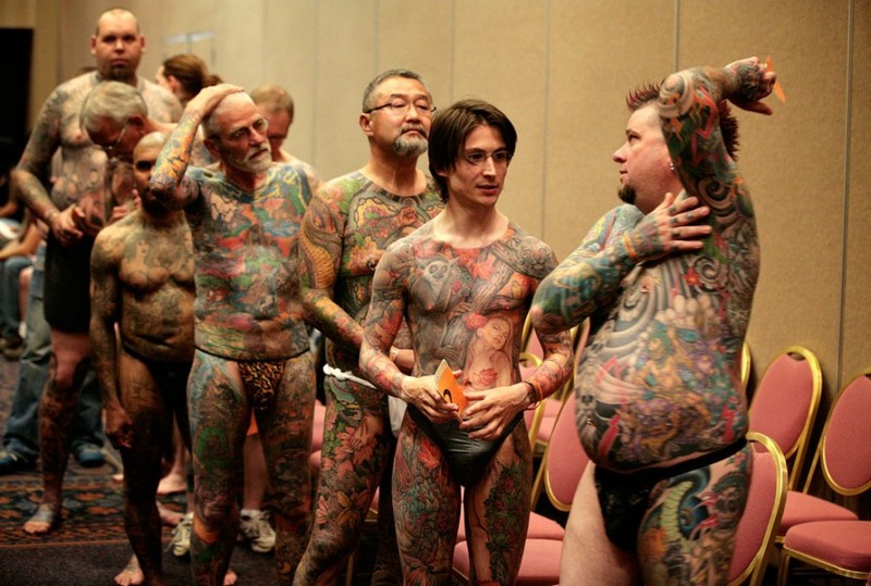 • перекрытие или так называемый камуфляж (способ «маскировки» рисунка татуировки методом нанесения сверху краски телесного цвета). Минус метода заключается в том, краска не может быть подобрана точно в тон тела и со временем может рассасываться, некрасиво открывая старый рисунок;