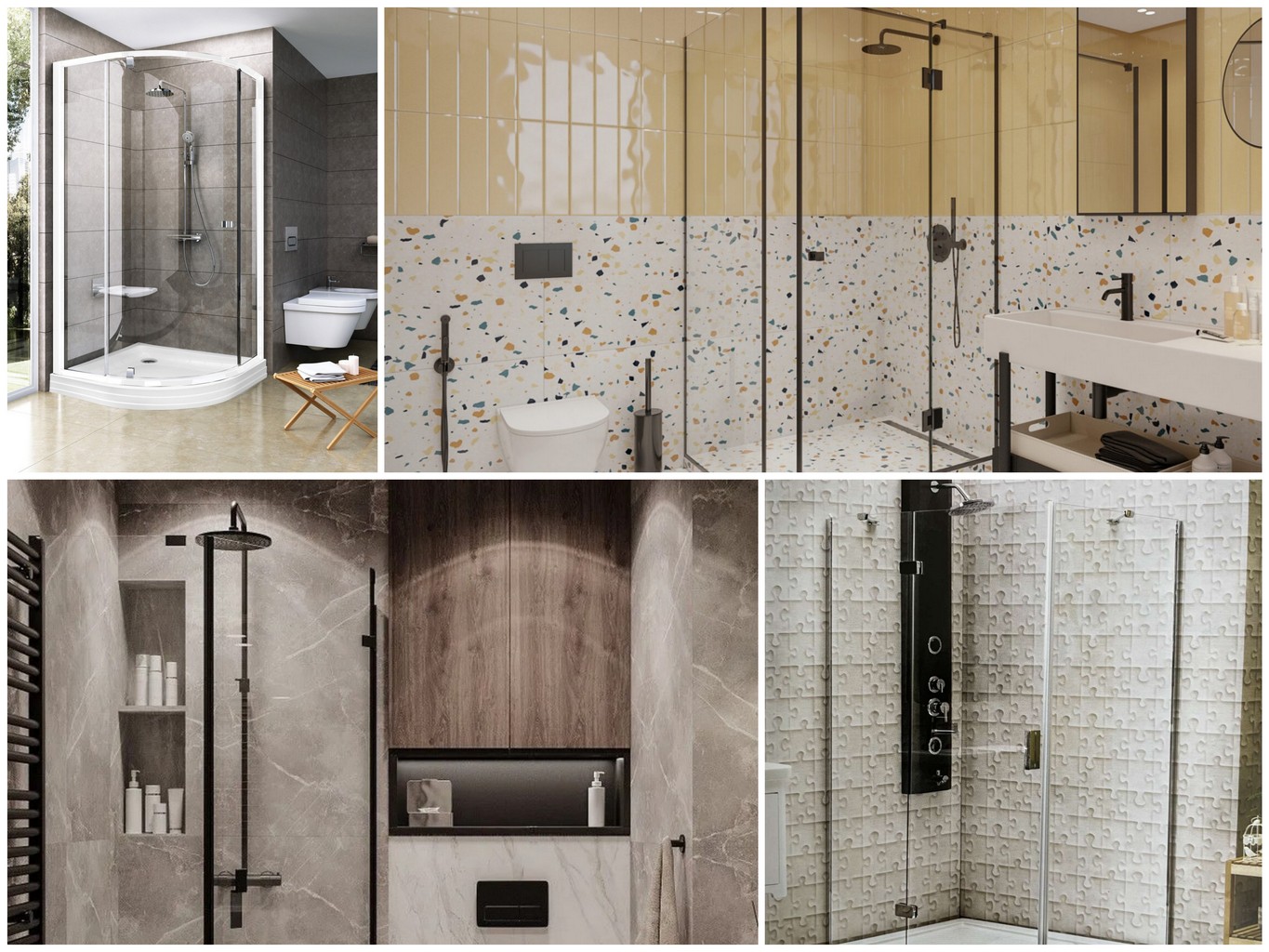- Если в доме пожилые люди или дети — лучше выбирать закрытую или частично открытую душевую с высоким бортиком или порогом, чтобы избежать луж.
