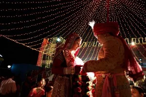 Индийские свадьбы сопровождаются роскошным обедом или ужином, после которого невеста прощается со своими родителями и друзьями, и уходит к мужу и своей новой семье.