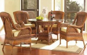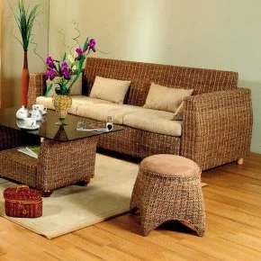 Ротанг или испанский тростник растет в тропических лесах Юго-Восточной Азии. Это одно из самых длинных растений на Земле длина стеблей которого достигает 300 метров. Его древесина имеет трехслойную структуру. Для изготовления мебели используется твердая сердцевина, а из коры изготавливают циновки и маты. Средний слой обладает пористой структурой и нигде не применяется. Твердая сердцевина ротанга способна изменять свои свойства и легко гнуться после обработки паром. При высыхании она сохраняет форму и снова становится жесткой. Эти качества издавна были известны жителям Юго-Восточной Азии для которых изготовление плетеной мебели было привычным делом.