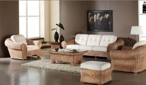Красивая плетеная мебель из ротанга долгое время использовалась только для использования во дворе или саду. Сегодня, мода на эко стиль изменила устоявшиеся привычки и мебель из натурального ротанга перекочевала внутрь домов и квартир. Красивый набор мебели из ротанга благодаря своей красивой фактуре и плавным линиям способен украсить интерьер выполненный в таких стилях, как классика, эклектика, винтаж, прованс, шале, кантри. Некоторые модели с преобладанием прямых линий и правильных форм можно добавить даже в интерьер стиля минимализм или хай-тек. Особенно актуально будет смотреться комплект мебели из ротанга в интерьере эко-стиля, где используется много живых растений и природных материалов.