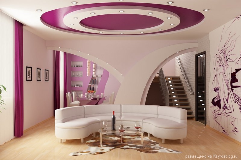 Для отделки потолков в частных домах российские компании натяжных потолков предлагают или виниловую пленку, или синтетическую трикотажную ткань с полимерной пропиткой. Процесс установки различных натяжных конструкций не является проблемой для заказчика. Скорость установки никак не зависит от применяемого материала. Бригада из двух человек будет работать в Вашей комнате не более четырех часов. Срок зависит только от уровня сложности заказа. Вы можете приобрести обычный плоский потолок классического вида. С другой стороны, Ваша фантазия может воплотиться в многоуровневом изделии с криволинейными элементами и объемными 3D-фигурами. Все равно монтажники не задержатся надолго в Вашем доме.