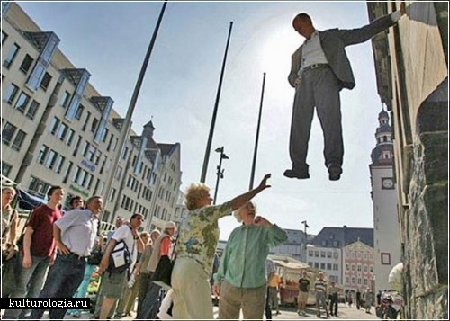 Берлинский уличный исполнитель Johan Lorbeer имеет свой особый подход к уличному представлению в людных общественных местах и умеет удивить и ошарашить публику. Он может часами [висеть в воздухеk, заставляя тысячи туристов и местных жителей открывать рты от удивления и ломать голову над тем, как может человек превратиться в птицу.
