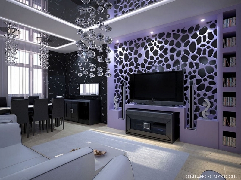 Популярная ранее вертикальная мебель для гостиной уступила пальму первенства горизонтальной. Сегодня в моде невысокие горизонтальные поверхности с открытыми стеллажами, которые часто вешают ассиметрично. Это не только создает ощущение пространства и света, но и задает некую динамику. Для больших комнат лучше выбирать наборы мебели для гостиных, которые выглядят массивно и тяжеловесно, а для маленьких — встроенную мебель или мебель на высоких и тонких ножках. Очень популярной стала глянцевая мебель для гостиной и её антагонист — матовая. Цвет мебели можно выбирать любой. в зависимости от стиля вашего интерьера и личных пристрастий.