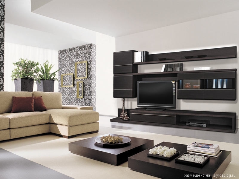 Кроме мягкой мебели и стенок комплект мебели для гостиной будет неполным без журнального столика и тумбы под телевизор. Вариантов дизайна этих элементов сегодня существует огромное множество