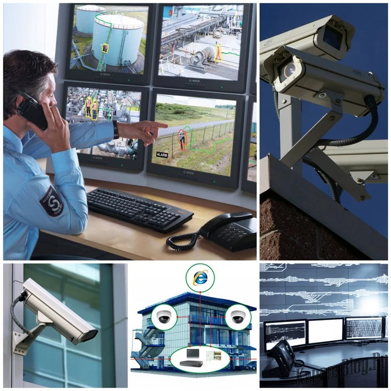 Системы видеонаблюдения включают в себя следующее оборудование: видеокамеры с объективами, поворотные устройства для обеспечения большей площади наблюдения, а также устройства по обработке, записи и демонстрации полученного изображения.